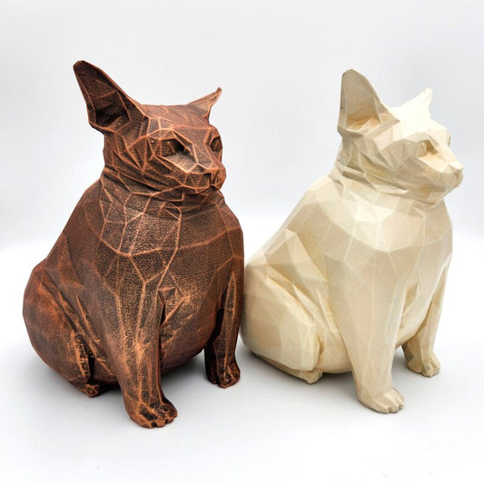 Fat Cat Low Poly Statue old bronze or mramor color handmade sculptures